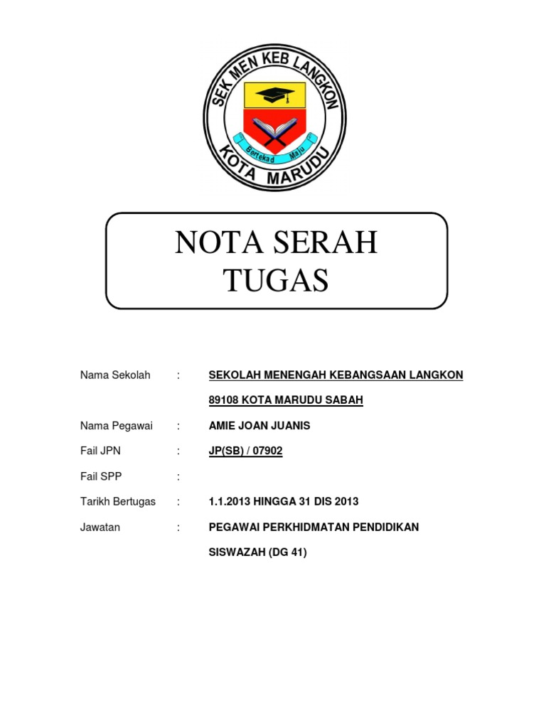 for "Serahan Surat Serah Tugas - CONTOH NOTA SERAH TUGAS Perlu Diisi Untuk Guru Yang Berpindah Keluar"